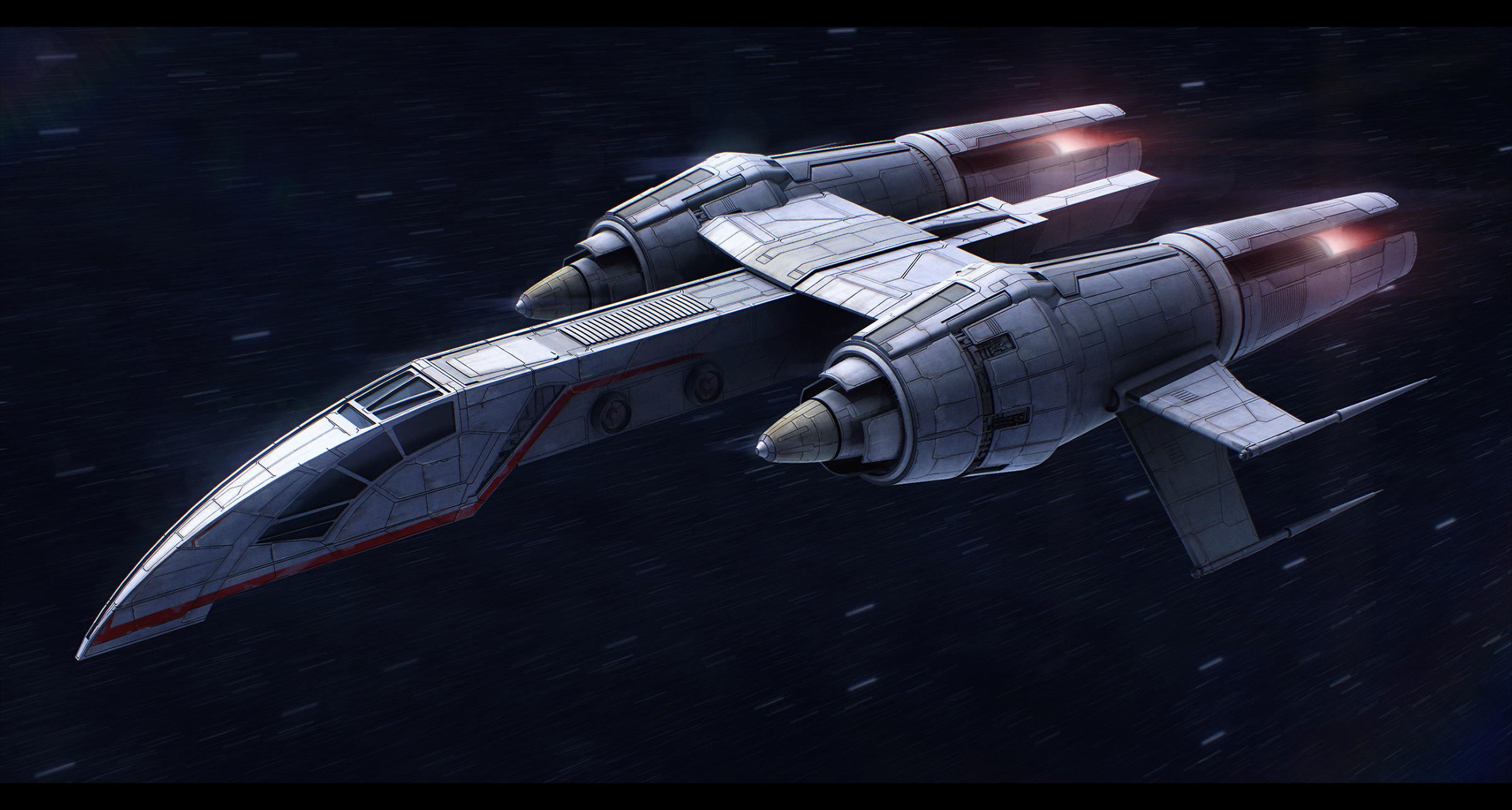 My other favorite Star Wars design, Raven's Claw was the light courier flown by Jan Ors and Kyle Katarn in the Jedi Knight series. The smallest vessel of my top 5, and the lightest armed of the 5 (just a single laser cannon under the nose and 2 proton torpedo launchers, one fore and one aft), but I love it's shape and it's ridiculously large engines for a vessel of just 20 meters in length, which suggest it is one of the fastest vessels in all of Star Wars.