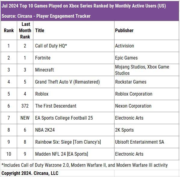 Here are the top 10 games played on the Xbox Series X|S ranked by monthly active users: