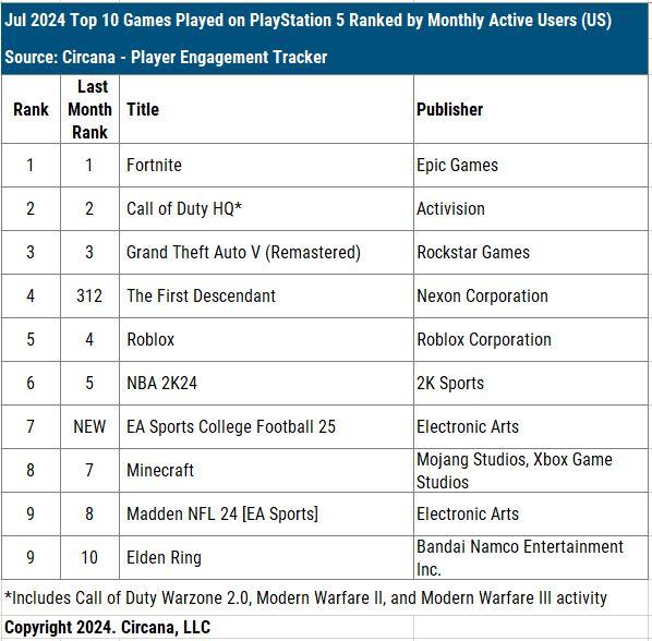 Here are the top 10 games played on the PlayStation 5 ranked by monthly active users: