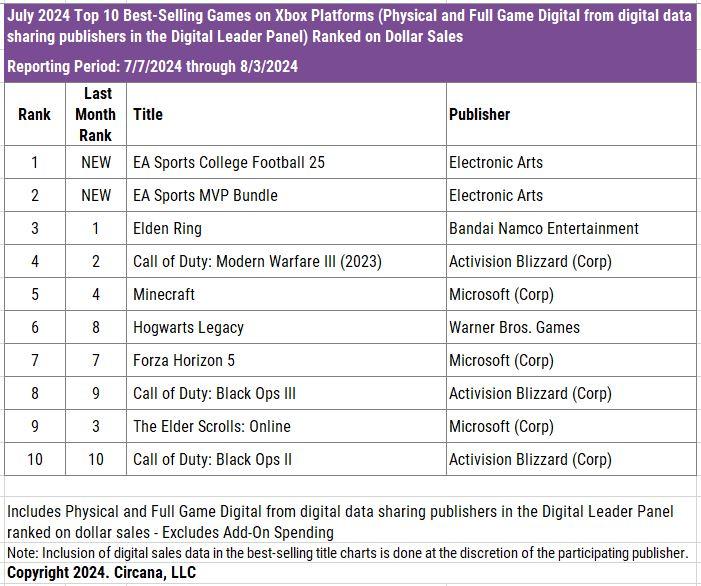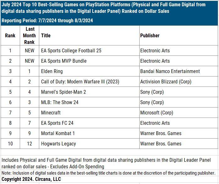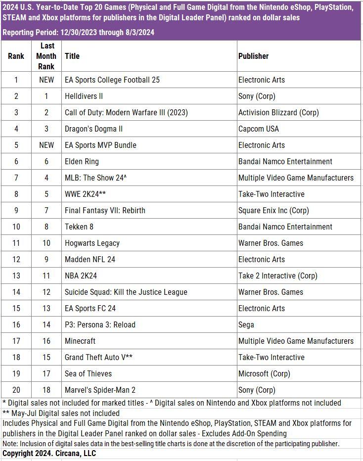 EA Sports College Football 25 had a huge first month as it debuted in first place in July and is already the best-selling game of 2024. It was the primary reason hardware sales for the PS5 and Xbox Series X|S are up year-on-year.