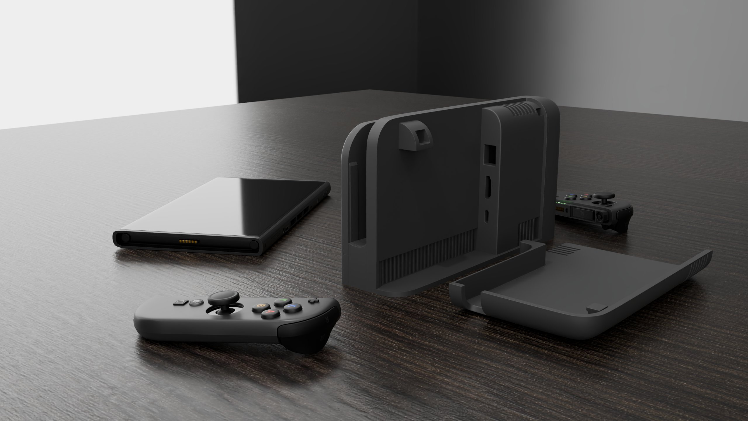Here's the new Switch 2 dock and side of the system with new kick stand as has been leaked since Christmas (images edited with the AI background the person used to hide their location taken out).