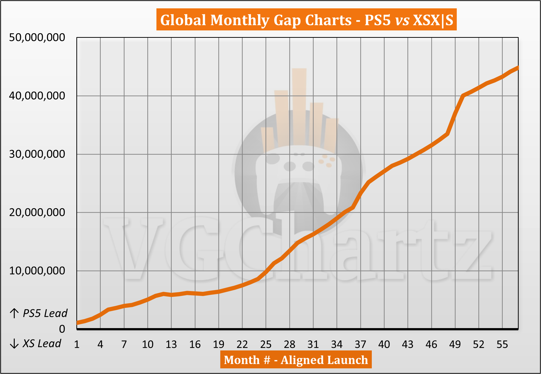 This monthly series compares the aligned worldwide sales of the Xbox Series X|S and Xbox One.