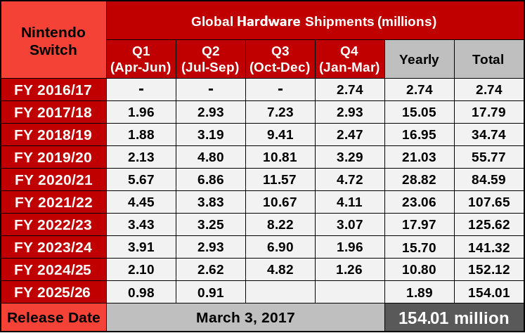 Best holiday months / When will the Switch pass 160M? / LT expectations of: Switch / PS5 / XBSX / Switch 2