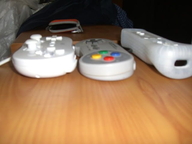 The classic controller is ok, but I still prefer playing games on my Super Famicom controller (Wish I could use it with the Wii though). As you can see the dimensions are a little bit different. I got my classic controller for free, though. Well it was free with a 5000 Wii points card (special promotion that was on in Japan before), so I can't really complain too much about it, hehe.