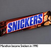 i live in the UK and am 16. and i can only ever remember the Snikers being called snickers. i have never even heard of the marathon bar
