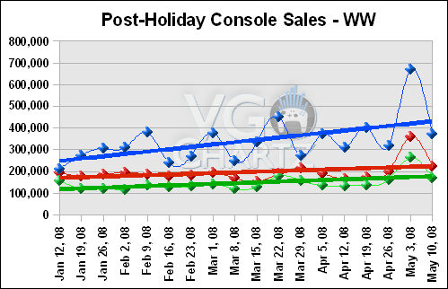 I will point out that in terms of indicators for the "normal" performance of a console I usually prefer median values. I point this out here because it shows that lifetime the PS3 median was around 127k and the Post-Holiday median is 189k. The PS3 increase happened from October through December. The increase has stopped for now though and the PS3 is simply peforming at a higher sales level than it was last year...it is not however increasing.