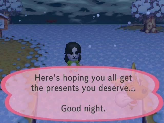 I started to talk to the villagers about the event and the presents, it really amaze me how much text Nintendo put in this game, everyone has a different thing to say, but...: