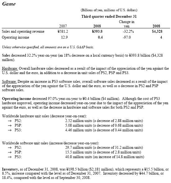 Basically they broke even with a $4 million profit. Considering Sony's forecast for the whole year and the fact that the company as a whole broke even as well, I'm guessing there may be some accounting details pushing a lot of the losses to the next quarter.