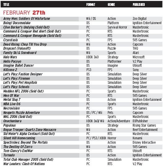 No new releases made it into the DS chart (though it has to be noted that "Professor Layton and the Curious Village" has established itself as an evergreen title) and PSP chart (because there were no new releases).