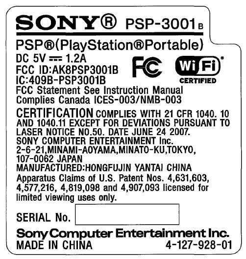 Same as PS3, JP = 00, US = 01, AU/NZ = 02, UK = 03, EMEA = 04 etc etc. That's not really relevant here, FCC is a US agency, so all models submitted to them will be US region. Previous model submitted to FCC was "PSP-3001", this new one is "PSP-3001 B".