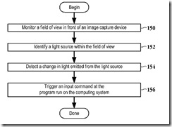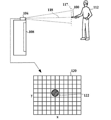 A US registered patent filed by Sony Computer Entertainment clues us in to a video game controller sitting somewhere in Sony’s R&D labs. The unnamed input device has a LED on the front and an external power supply. Emitted light is captured by an inexpensive camera and translated into user input data. Sony’s interface program is unique since the device produces one or more colors of light which allows greater flexibility for differently lit rooms.