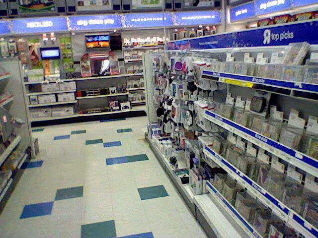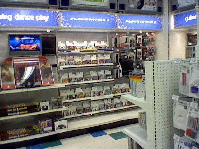Overall, the Toys R Us at my house has a lot more Nintendo games and systems. They've had Wii in for awhile, but a lot of people want Wii Fit instead. The selection of PS3 games is small, and they very rarely sell one of them. They sell PS2 in moderate streams to consumers. I took these pictures with my DSi when I went to the Pokemon event today that Toys R Us was distributing the Secret Key item for Rotom.