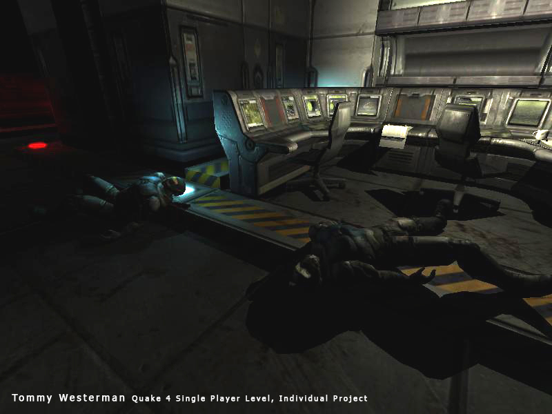 All those pictures have storyline and gameplay associated with them, though on a smaller scale since they were student projects and most of those were done in less than a week (except for the black and white one and the Quake 4 one with the two dead guys).