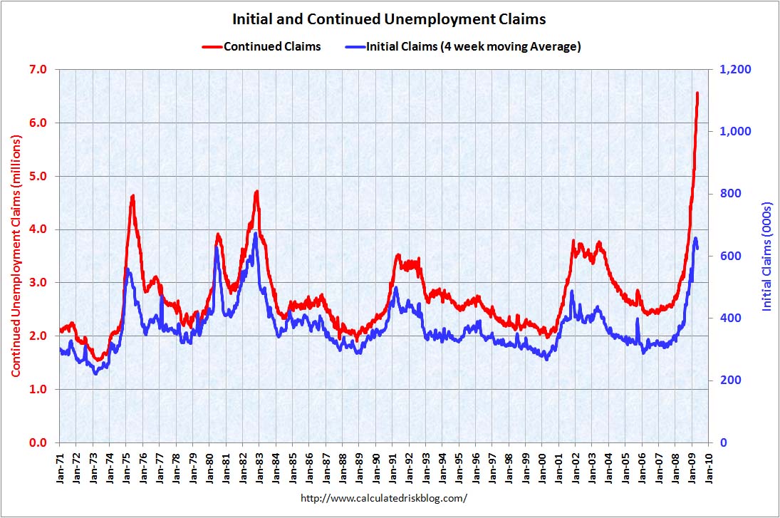 The data followed a report the previous day in which the total number of continuing claims for unemployment benefits fell for the first time since January, a month that witnessed the largest job losses since 1949.