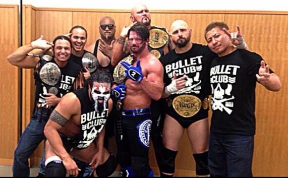 AJ showed up, took out Okada (the Champion), and revealed a Bullet Club t-shirt. Awesome way to show up and great booking to tie everything up.