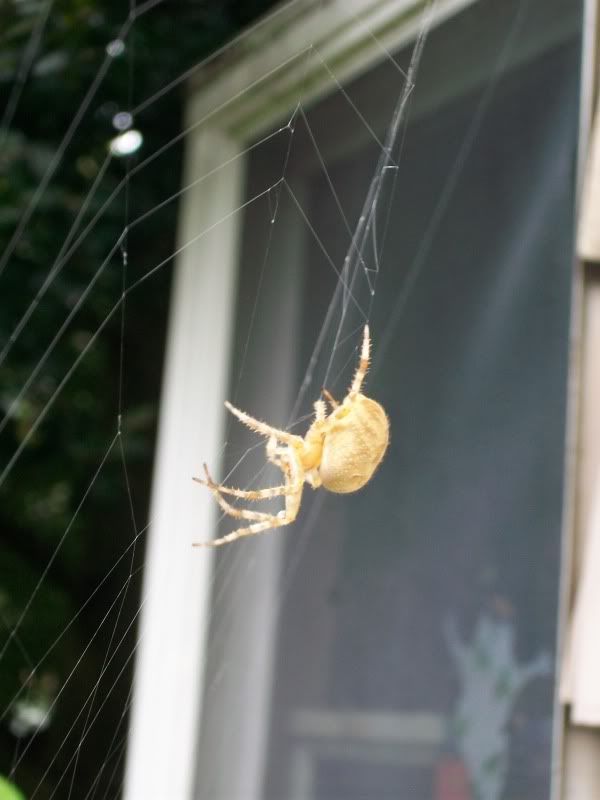 This ugly thing has been right outside my home's front door for the last few weeks. Today I decided to take a picture of it and toss some poor defenseless insects into it's web. Oh boy did it wrap those poor suckers up fast.