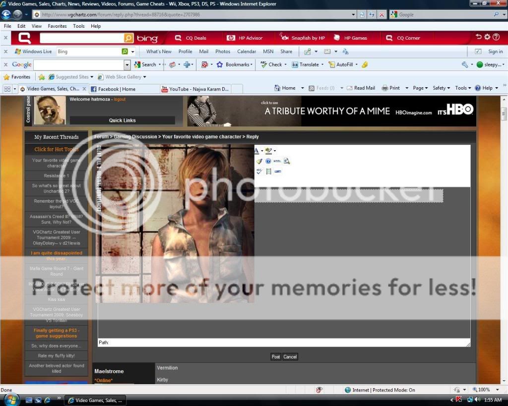 Ok, who's the damn fool who pasted a silent hill 3 pic on my screen...I'll hunt you down. Dammit, I can't post any pictures because of that God damn picture..whoever did this...I hate you.