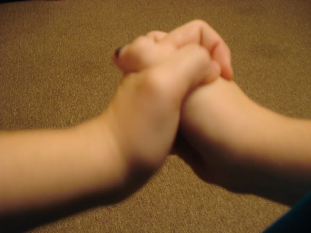 me and bacon have our left thumbs on top...but AJ and kyleigh have the right thumbs on top? WTF!?