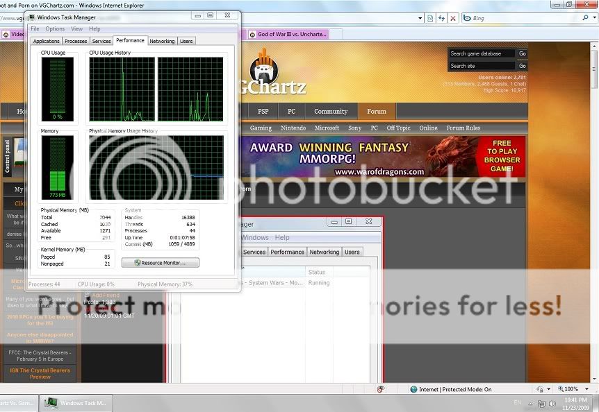 | TWRoO said: I don't know why you are using the taskmanager to determine things like this..... at least check the performance tab rather than using the stats at the bottom. The 5% you got for Gamespot is because it was idle at the time... had you refreshed a gamespot forum page, or opened a new page it would have spiked to 30-60% ish while it loaded the page, then gone back to 5%. VGCharts will do exactly the same thing, you just seem to have managed a screen shot at the exact time it spikes. |